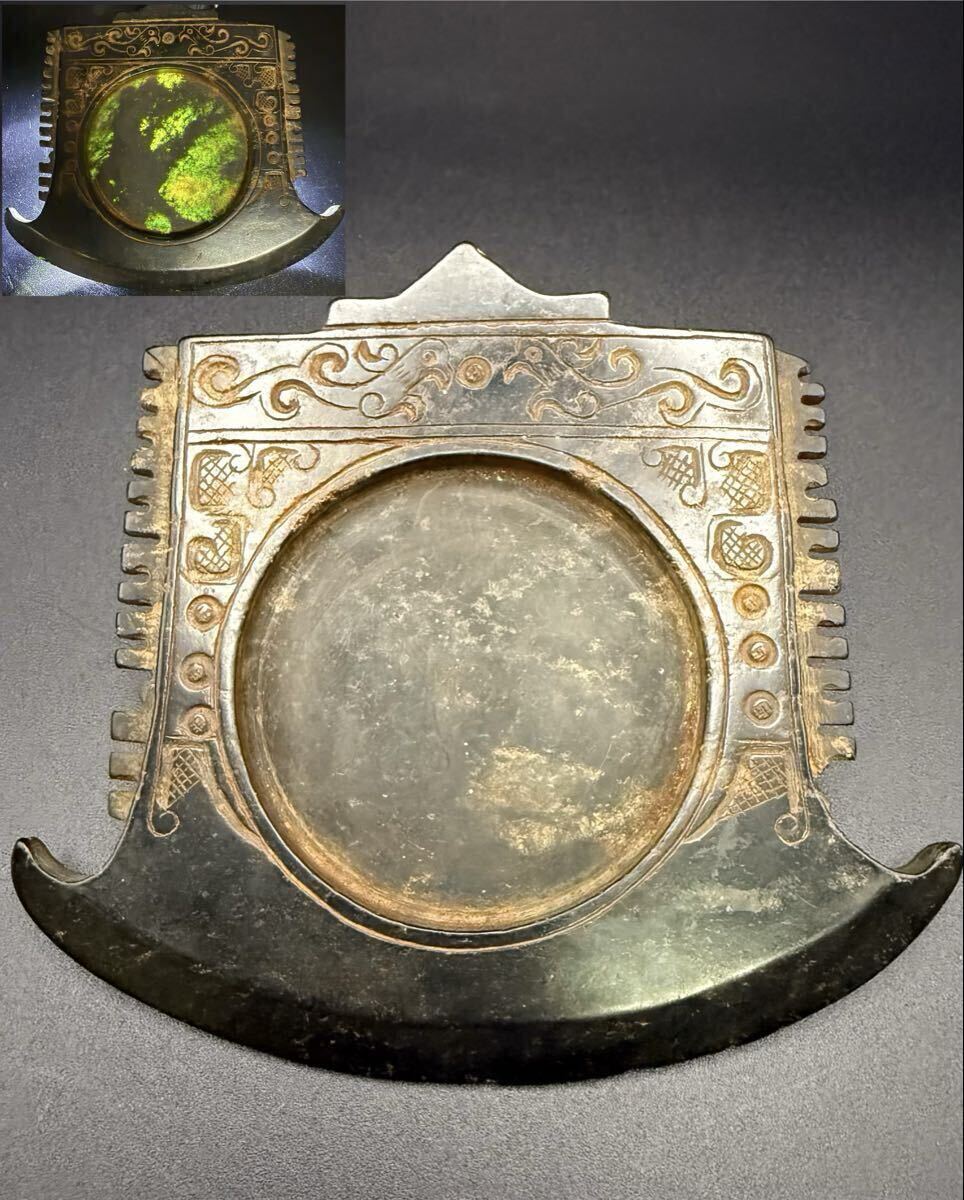 - 唐物 古玉 硯 書道具 玉製 (直径約:12cm 幅約:10.5cm〜13cm)