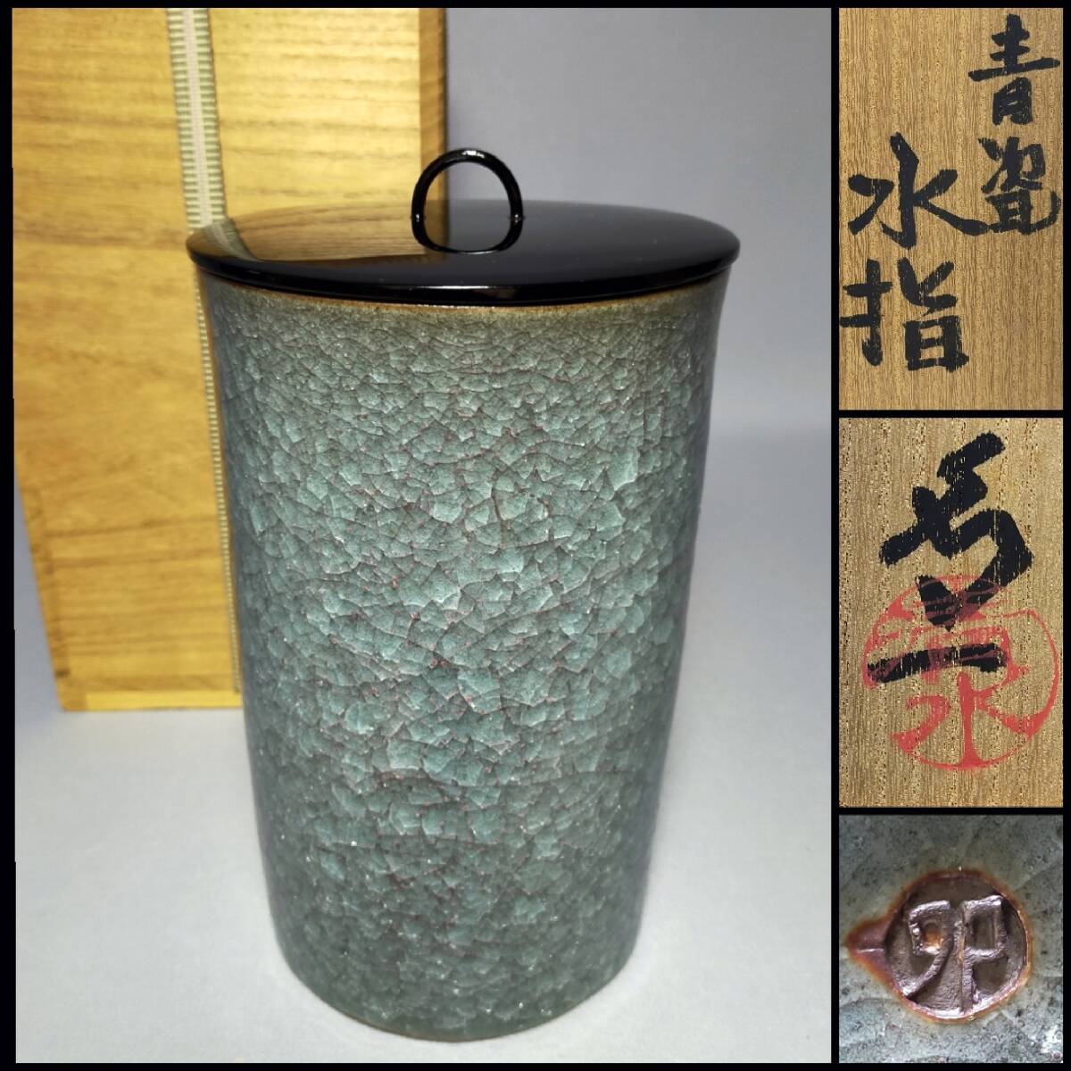 - AW27 京焼 水指 人間国宝 清水卯一 造 青瓷 青磁 氷裂貫入 共箱 茶道具