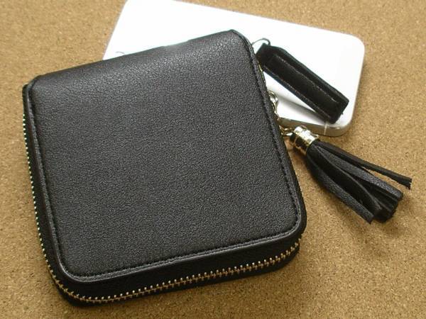 - 送料無料 レディース タッセル付き 正方形 ミニ財布 ブラック 黒