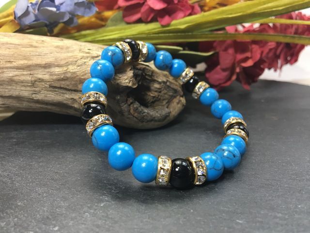 > ターコイズ&オニキス パワーストーン ブレスレット (ゴールド) 開運 浄化 魔除け お守り 成功 繁栄 効果 レディース 通販 #1