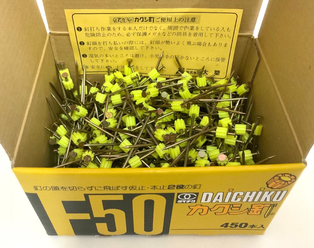 - 【金物屋在庫品】 ダイチク カクシ釘 F50 450本入り Φ1.47-50mm 釘の頭を切らずに飛ばす 仮止・本止2役の釘