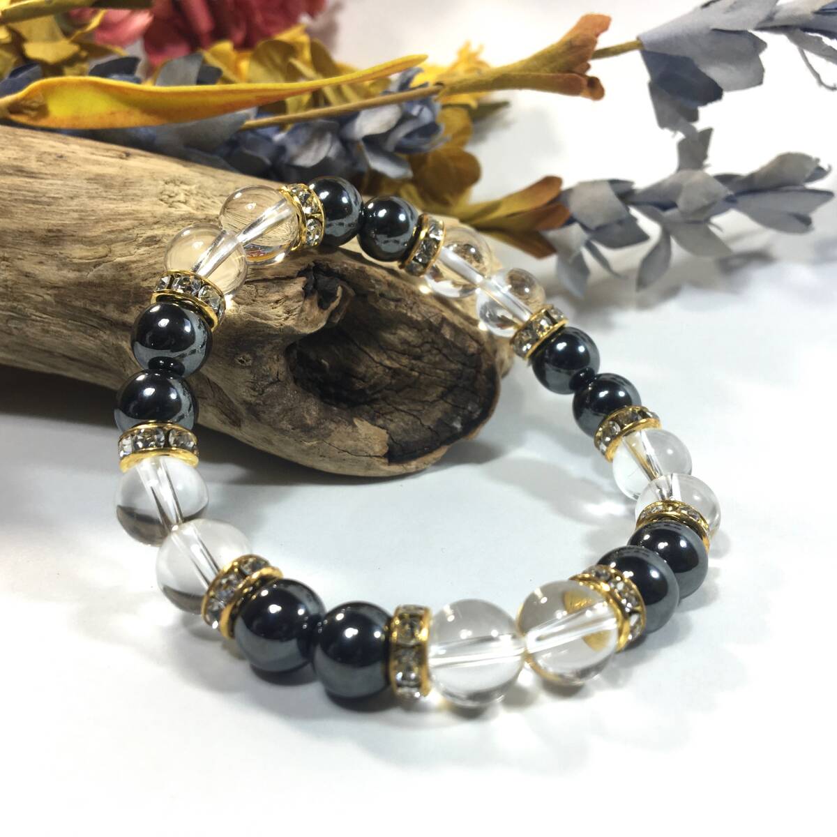 > ヘマタイト&水晶 パワーストーン ブレスレット 天然石ブレス ゴールド 8mm /開運 浄化 4月 誕生石 クリスタル レディース 通販