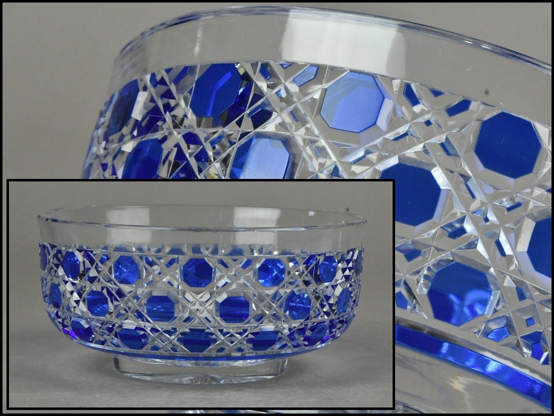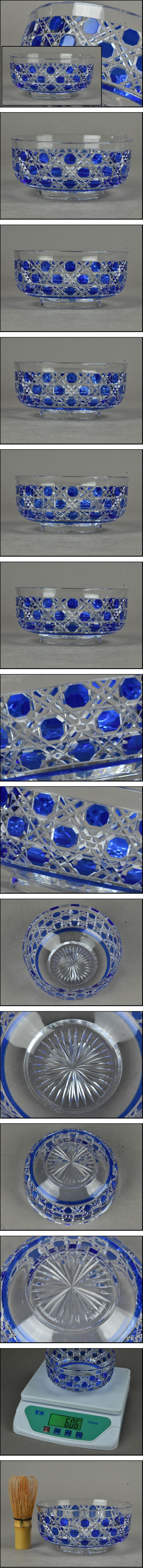 - 【NNK】重厚 江戸切子 クリスタル 青被せ ボウル 鉢 菓子鉢 茶道具 U7-908-10