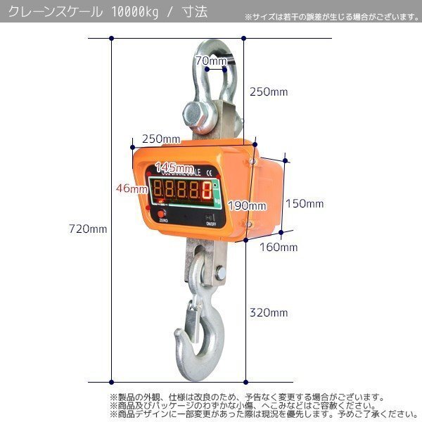 - ディスプレー LED大型 10トン デジタル クレーンスケール(吊秤) (10000kg) 10t 充電式 リモコン付【送料無料】
