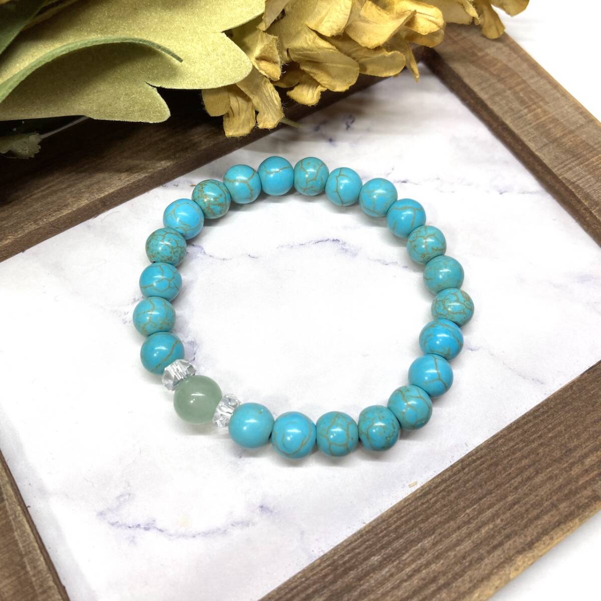 - アベンチュリン&ターコイズ ブレスレット パワーストーン レディース 女性 金運 恋愛 開運 数珠ブレス お守り