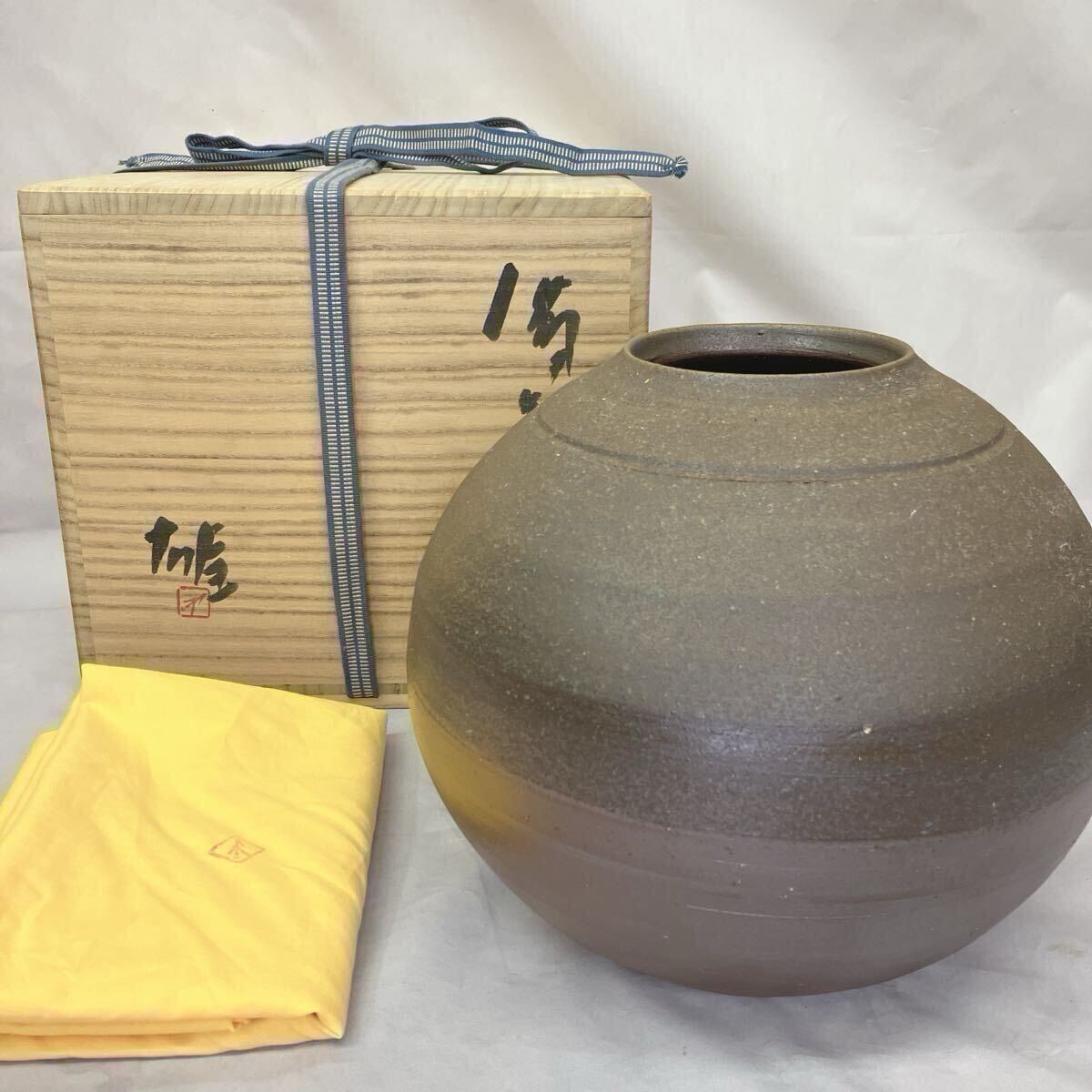 - 人間国宝 藤原雄 備前焼 壺 壷 花瓶 花入 栞付 共箱 共布