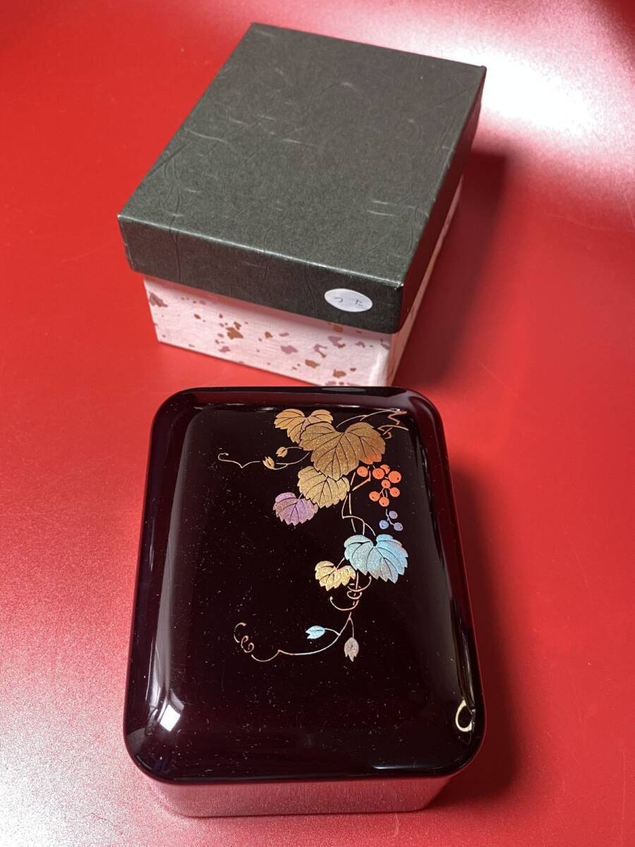 - 玉虫塗 蔦紋漆器 蓋付 漆塗り 小物入れ 葡萄 つた 金彩 共箱 伝統工芸 8x 10.5x 5.5cm 漆器(13403)