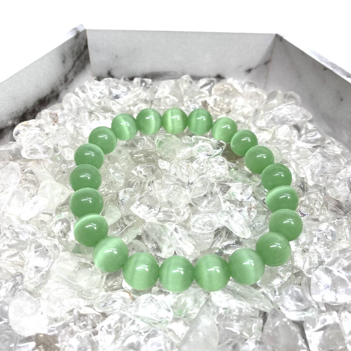 - キャッツアイ(ライトグリーン) パワーストーン ブレスレット 10mm (シンプル) 数珠ブレス メンズ・レディース 男性 女性 幸運 開運 浄化
