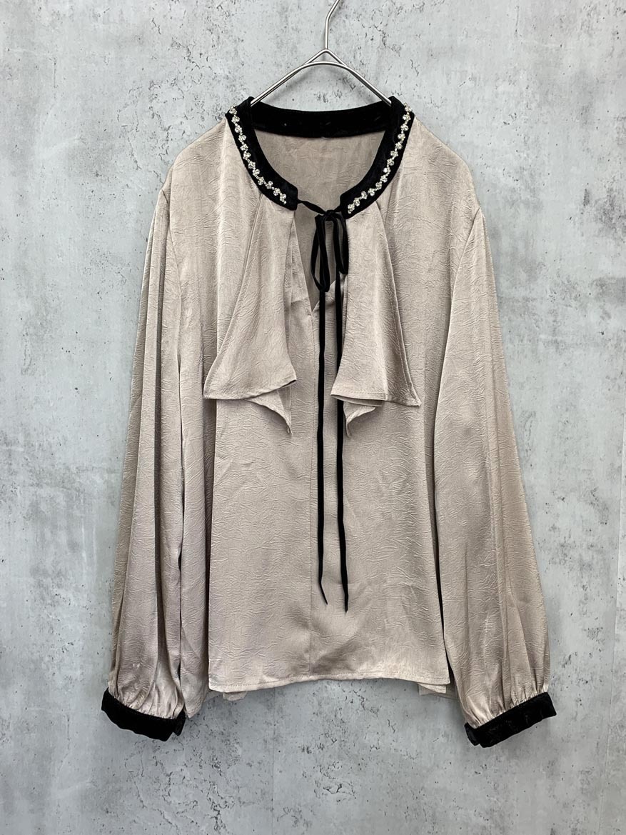 > ゆうパケットOK cawaii カワイイ 首元にぐるりビジューの艶めきブラウス トップス シャツ ベージュ ◇■ ☆ fid0 レディース