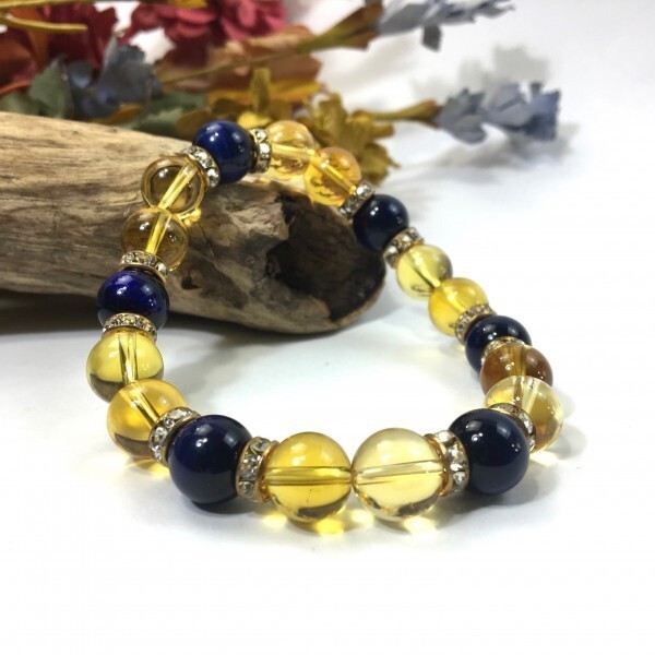 > シトリン×ブルータイガーアイ パワーストーン ブレスレット 天然石ブレス 10mm (ゴールド) メンズ・レディース 繁栄 富 幸福