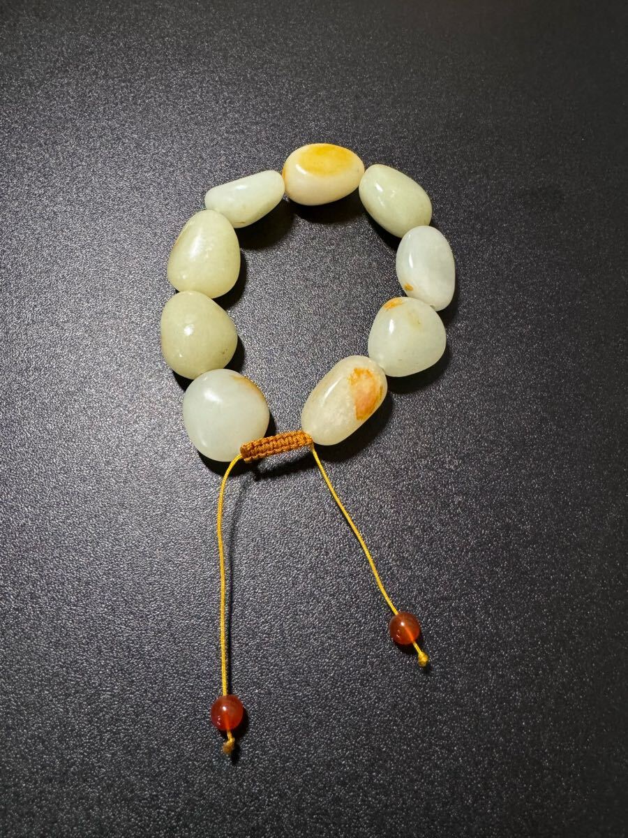 - 新疆産和田玉数珠 ブレスレット 腕輪 天然石 念珠 本玉 天然石 老玉 古玉 中国古美術 清時代中国古美術 旧家蔵出し