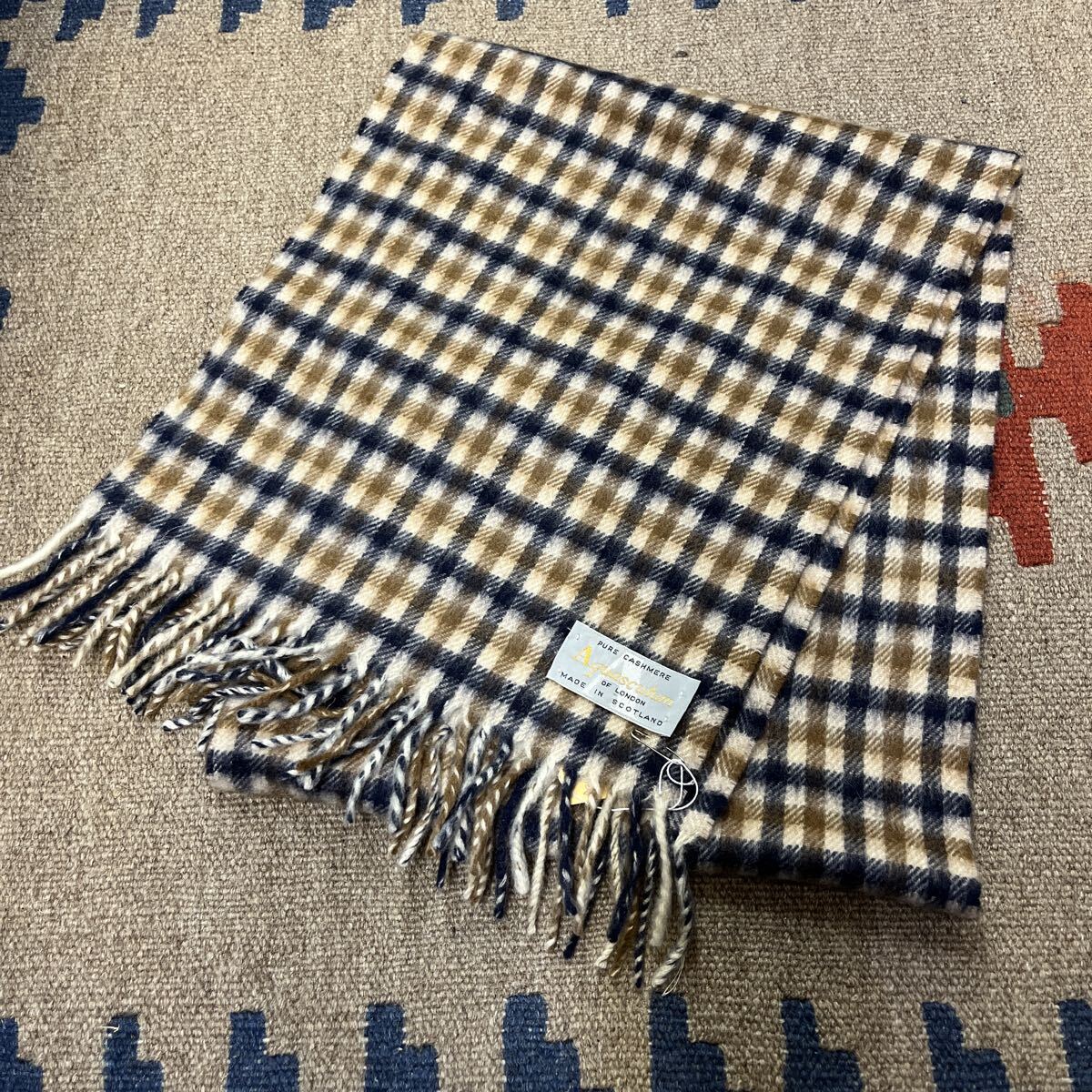 - Aquascutum アクアスキュータム カシミア カシミヤ クラブチェック スコットランド製 ベージュ マフラー