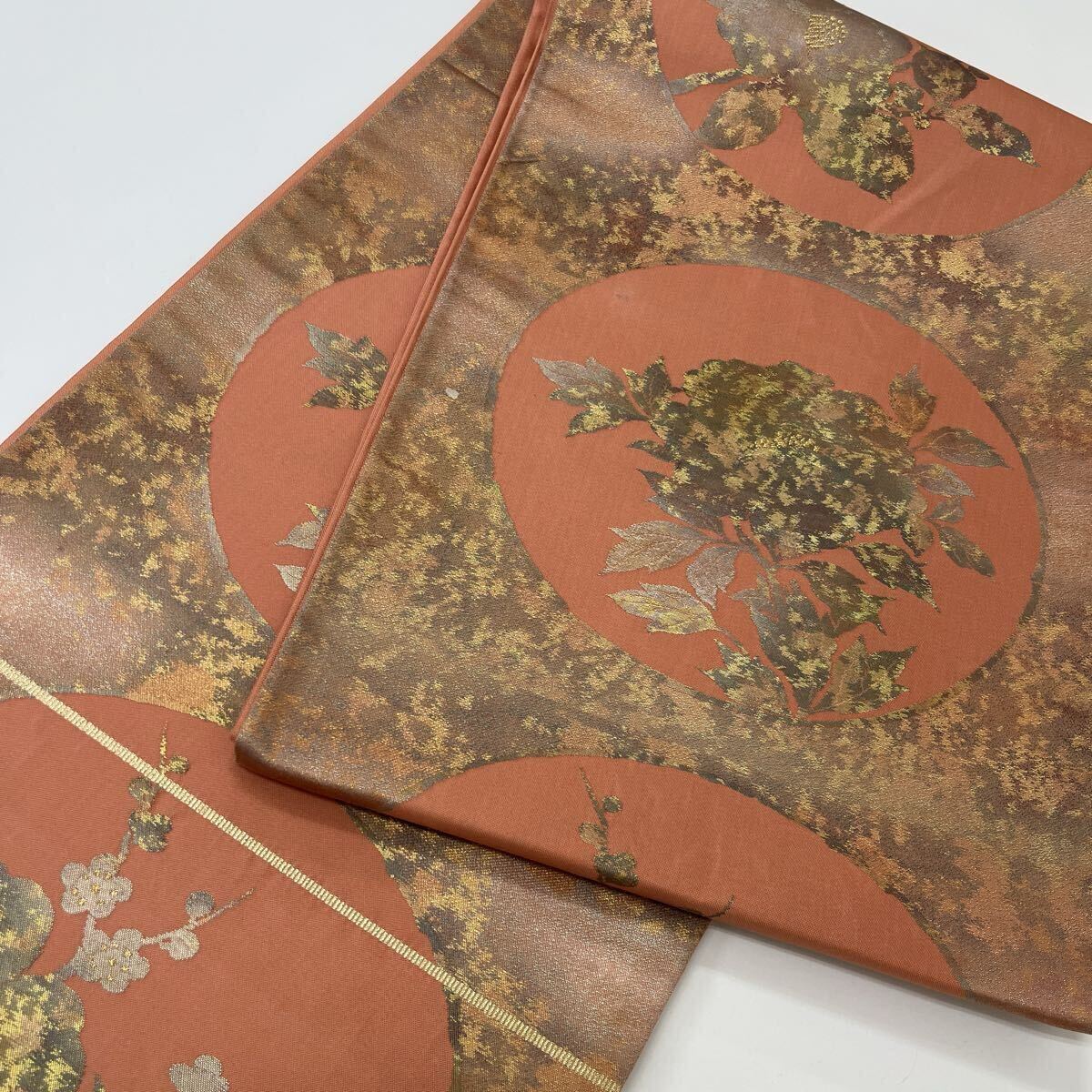 - 袋帯 大胆な金彩 美しい花 箔 正絹 W-4499