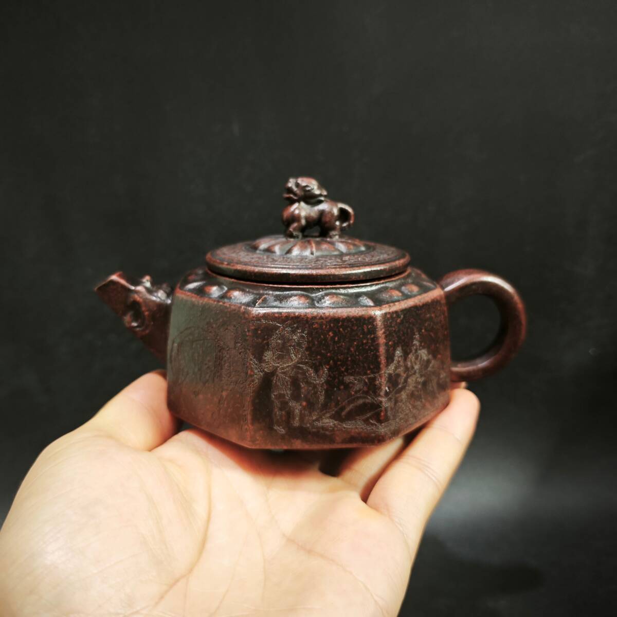 - 【超珍館蔵】紫砂壺 八方龍頭壺 顧景舟款 古紅泥 茶具 茶道品 置物 賞物 古賞物 古董品 古美術品 時代物 旧家蔵出 稀少珍蔵品