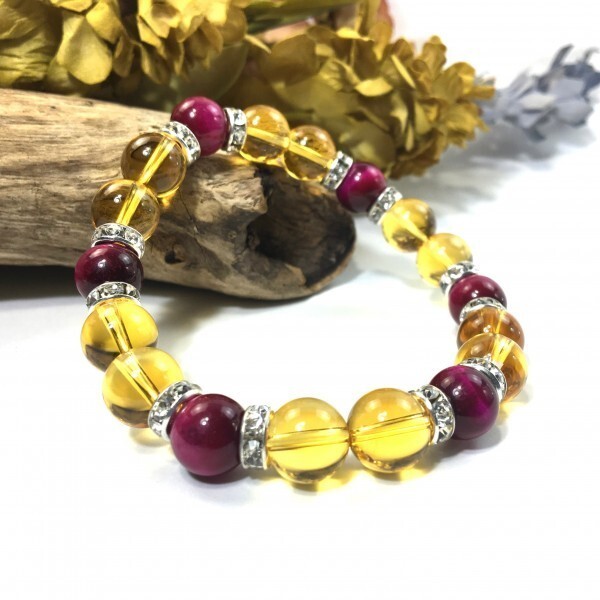 > シトリン×ピンクタイガーアイ パワーストーン ブレスレット 天然石ブレス 10mm (シルバー) メンズ・レディース 繁栄 富 幸福