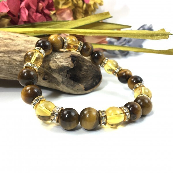 > タイガーアイ×シトリン パワーストーン ブレスレット 天然石ブレス (ゴールド) 10mm メンズ・レディース 金運 仕事運 願望成就