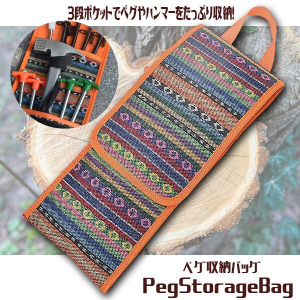 - 送料無料 ペグケース ペグ袋 3段ポケット付き ペグハンマー収納ケース ネイティブ柄 エスニック柄 キャンプ アウトドア ペグバッグ 収