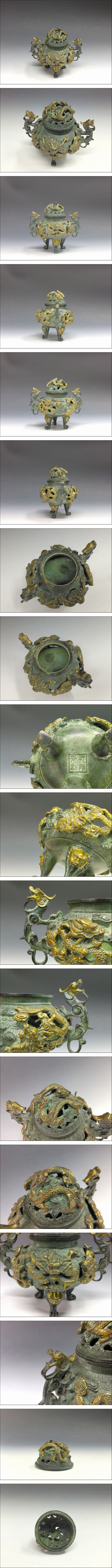 > ヴィンテージ◆◇銘;乾隆年制 鋳銅 高浮透四爪龍文 獣面三つ脚 香炉うぶだし品◇◆床飾り 書院飾り 置物 オブジェ 近代工藝作家 dy15582-p