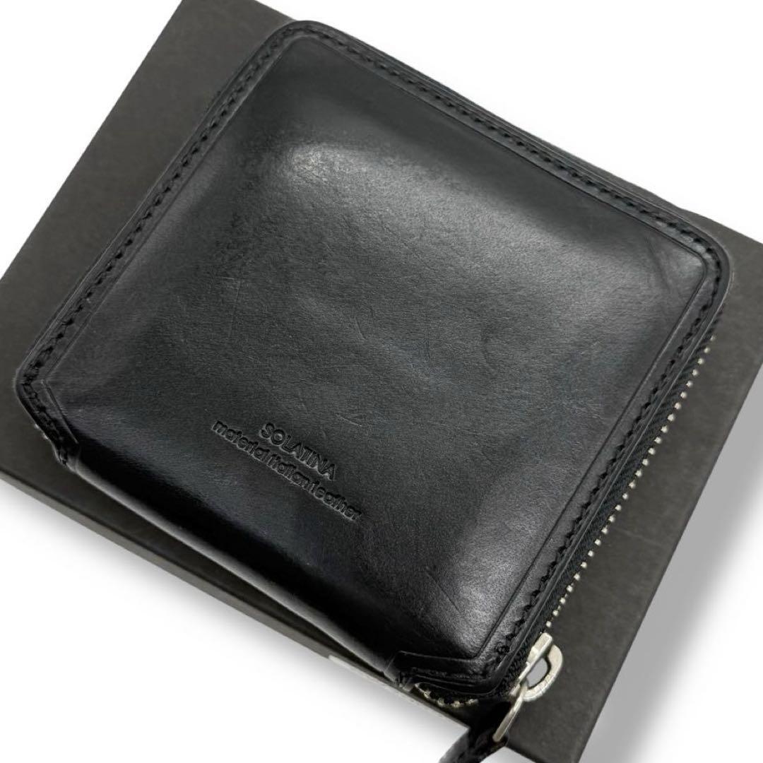 - ソラチナ 折り財布 オールレザー 本革 コンパクトウォレット ブラック SOLATINA ラウンドジップウォレット 箱付き da22