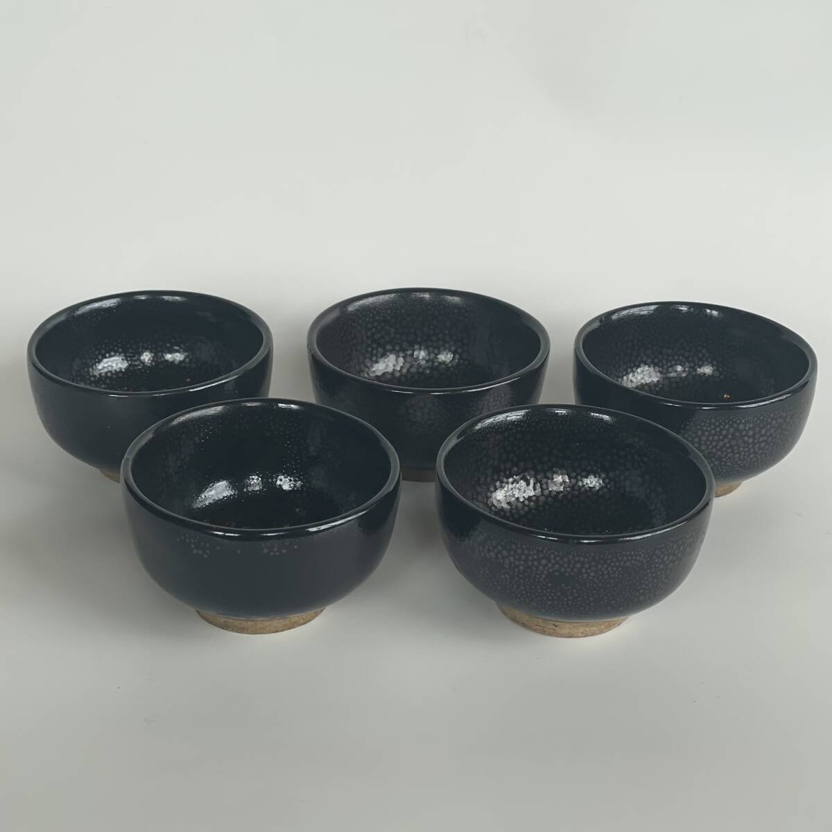 - 中国博山 油滴天目 雨滴 山東 酒盃 杯 ぐい呑 湯のみ 湯呑 茶道具 5客揃 黒釉