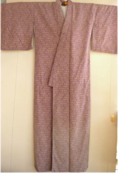 - 再値下げ【洗える着物】2000円あずき色系網目文袷小紋 お稽古着【中古品】