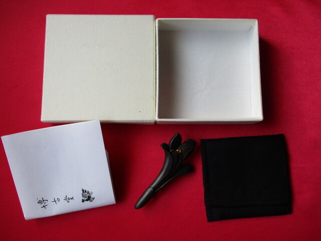 - 鎌倉彫 博古堂 文様:百合 漆色:錫+金彩 ブローチ 未使用品