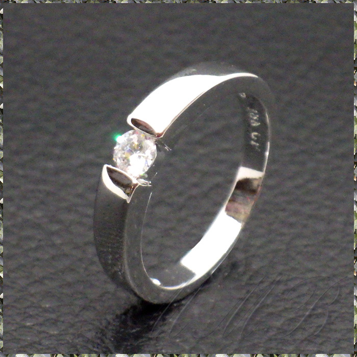 - [RING] 18K White Gold High Polished Mirror Finish φ4mm クリスタルCZ テンションセッティングルック ホワイトゴールド 4mmリング 26号