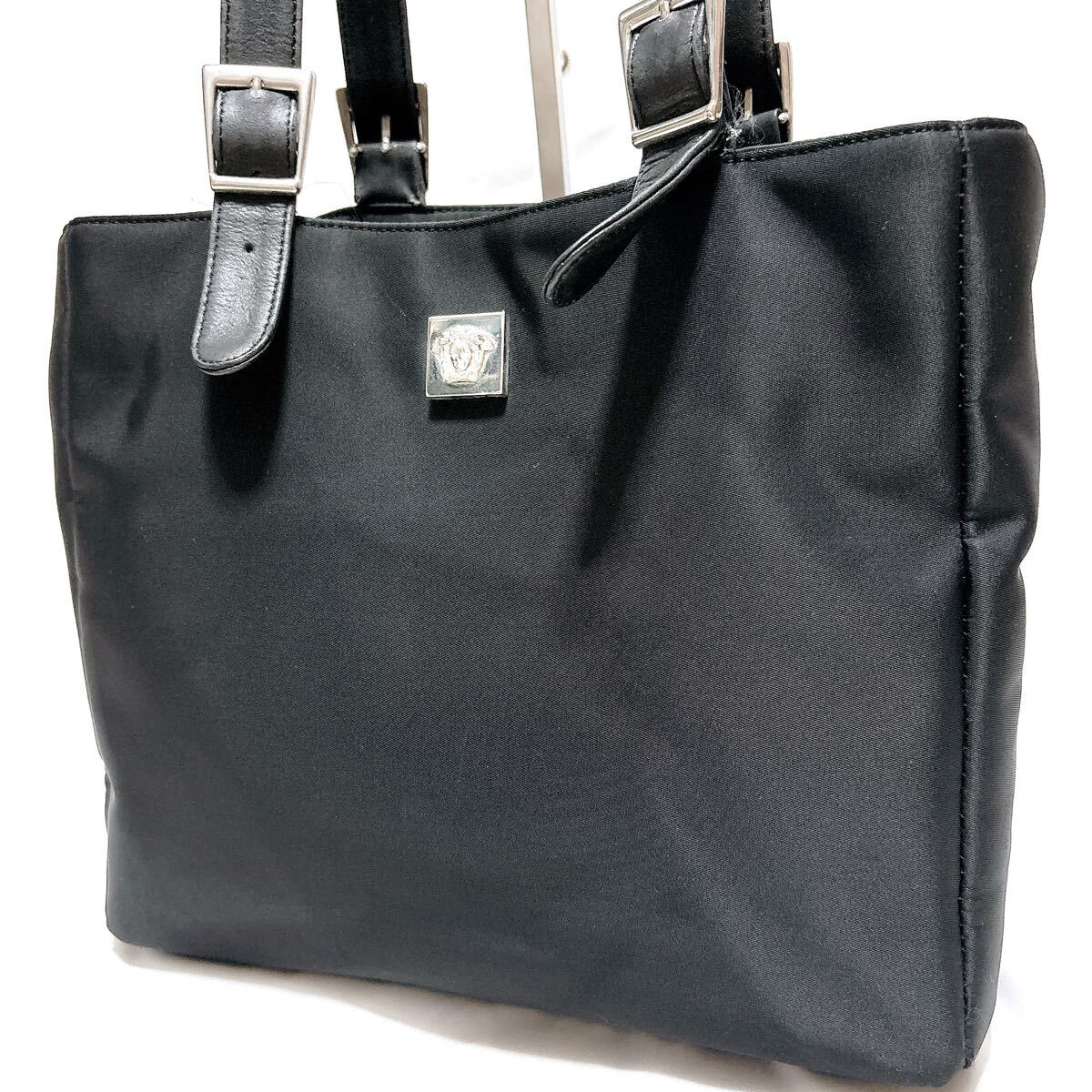 - VERSACE ヴェルザーチ ナイロン メデューサ ブラック トートバッグ 肩掛け可 レザー