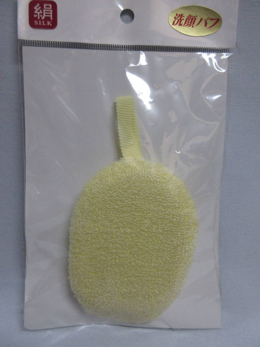 - ★ 疲れた肌のお手入れに! シルク・パフ 美肌効果満点 博多織の絹洗顔パフ 黄色の小判型 追加割引有