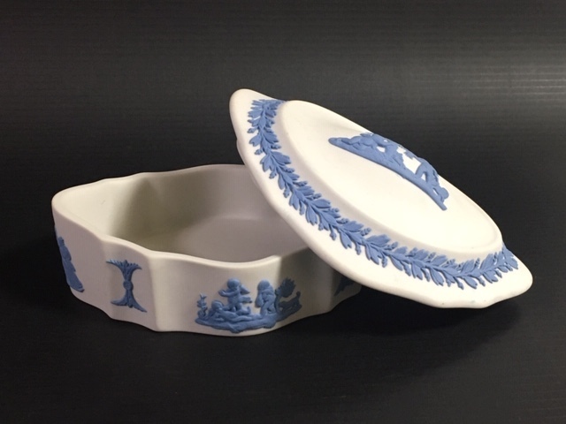- ◎ウェッジウッド 白/青色ジャスパー ユニークな蓋物 「天使」◎e14