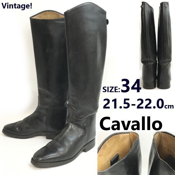 > カバロ/Cavallo☆本革/オールレザー/ロング丈/ジョッキーブーツ【レディース/21.5-22.0/黒】Vintage/乗馬靴/riding/Boots/Shoes/◆pWB111-4