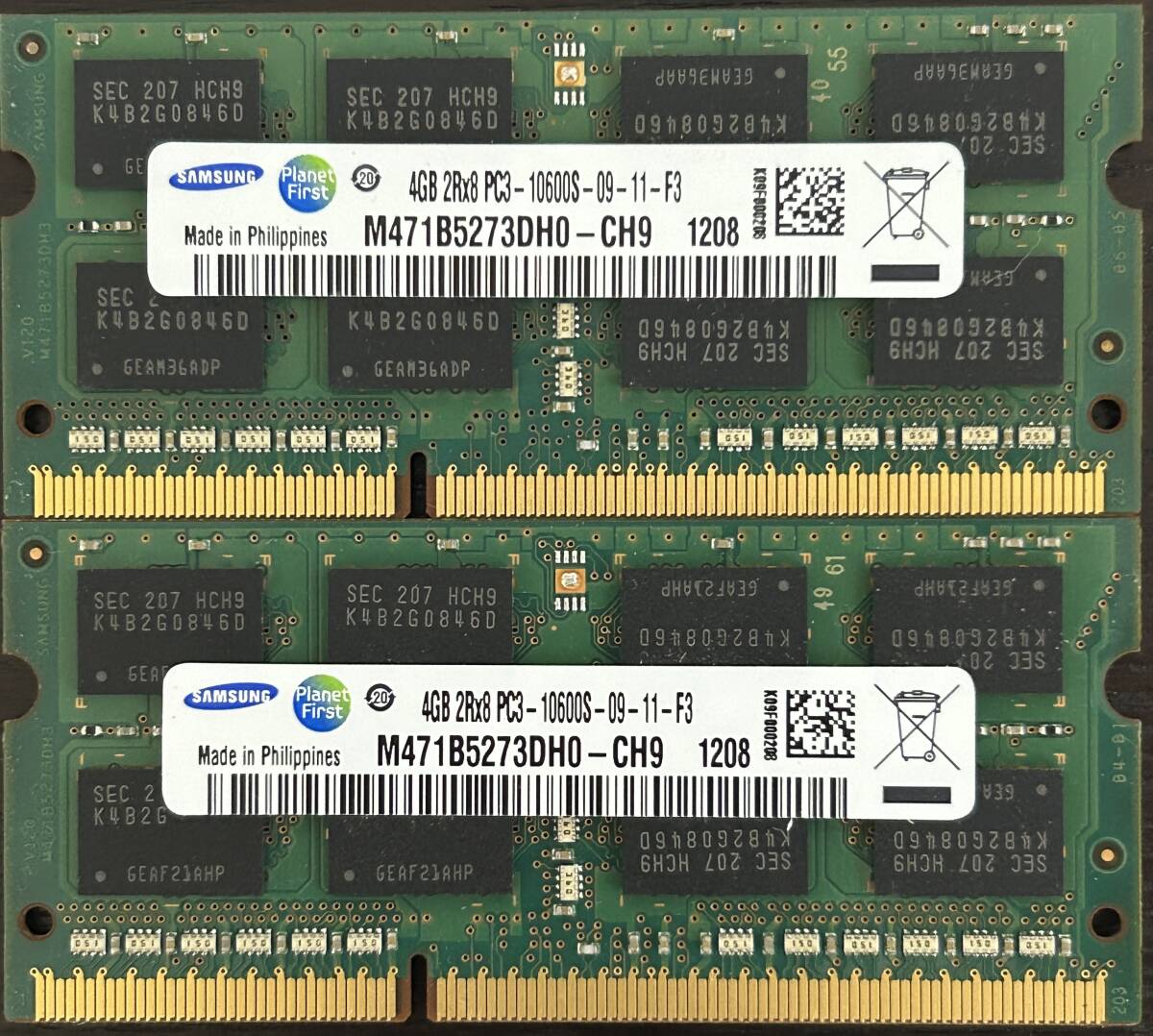 > 即決 動作確認済み SAMSUNG サムスン SO-DIMM 204pin DDR3 PC3-10600S 4GB×2枚 ノートパソコン用 708