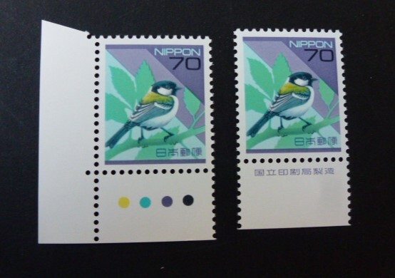 - 国立より 70円 10面シート シジュウカラ カラーマークと銘版 2枚組 未使用 美品 D-25-4