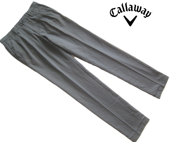 - 美品!!キャロウェイ Callaway*ロゴタグ付き 裏地フリース素材 ストライプ柄ウールタッチパンツ S グレー GOLF ゴルフ 防寒 秋冬