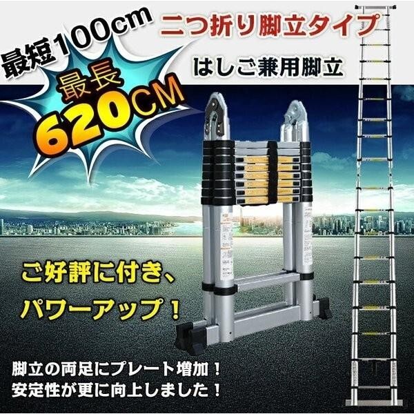 - 送料無料 はしご 6.2m 伸縮 梯子 アルミ製 調整 伸縮はしご 兼用 脚立 ハシゴ 二つ折り スーパーラダー スライド式 安全ロック zk184