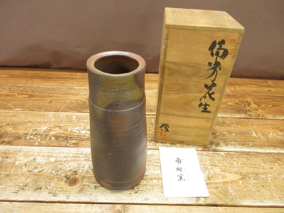 - 【T2-7731】美品 備前焼き 備前陶芸村 南燦窯 南山窯 森本英助 高さ約25cm 花瓶 壺 花器 東京引取可【千円市場】