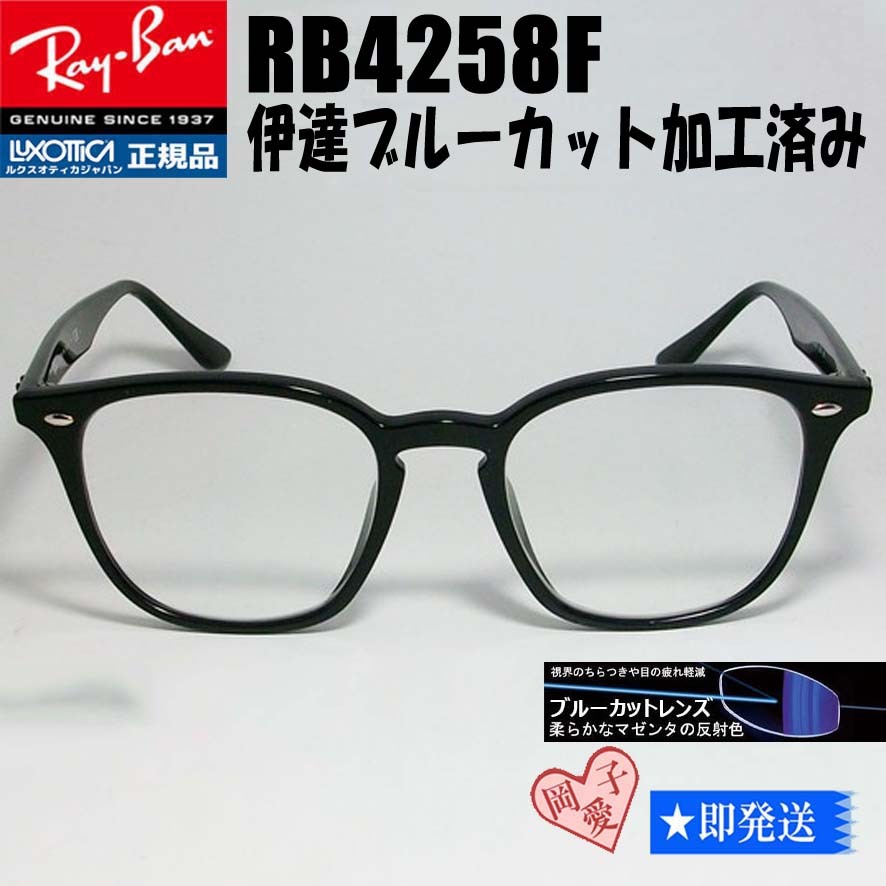 - 伊達ブルーカット★RB4258F-DATEBP-52★RayBan レイバン UVカット ブルーライトカット加工済み メガネ ブラック フレーム