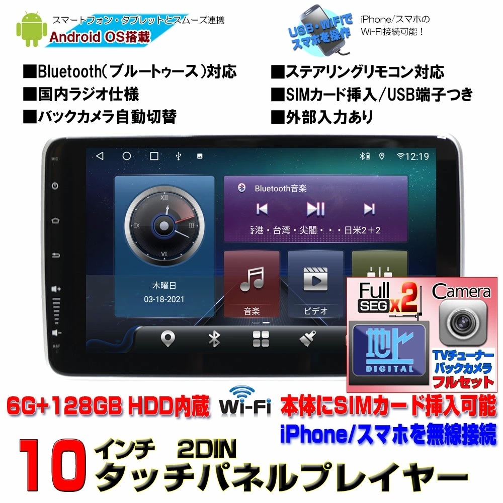 最新機種 車載カーナビ2DIN10インチタッチパネルプレイヤー Android10.0 + 地デジ2x2フルセグチューナーセット+170度バックカメラセット WiFi ラジオ USB Bluetooth