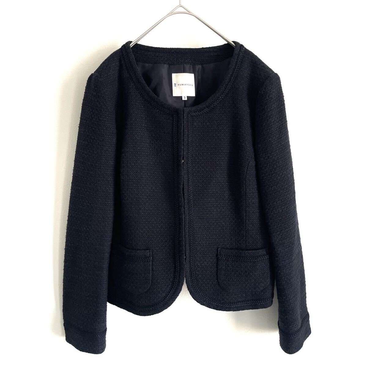> 美品★【組曲/KUMIKYOKU】ノーカラージャケット/ツイード セレモニージャケット/3表記/ネイビー/衝撃プライス!上質大人シンプル★B85