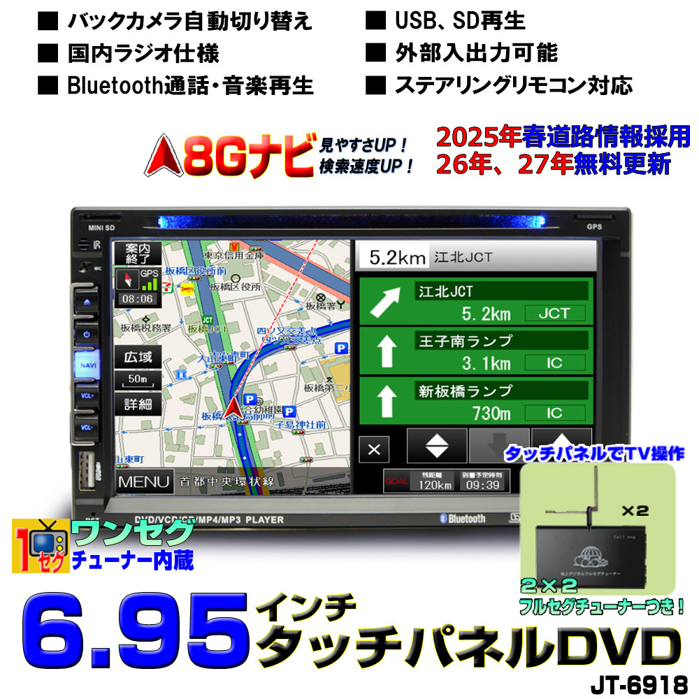 > 【一年間保証】2025年春版3年間無料更新 8Gカーナビ 2DIN7インチタッチパネルDVDプレーヤー+地デジ2x2フルセグチューナーセット[D422