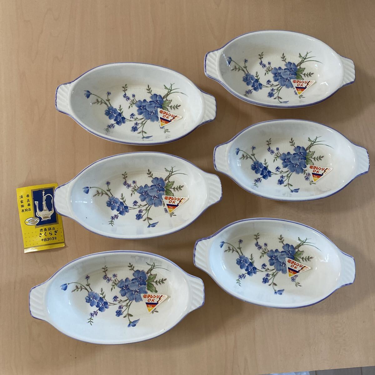 - ゆ6 ★ 未使用 ★ グラタン 皿 食器 6枚 まとめて 電子レンジ 調理 徳島銀座 さくらぎ