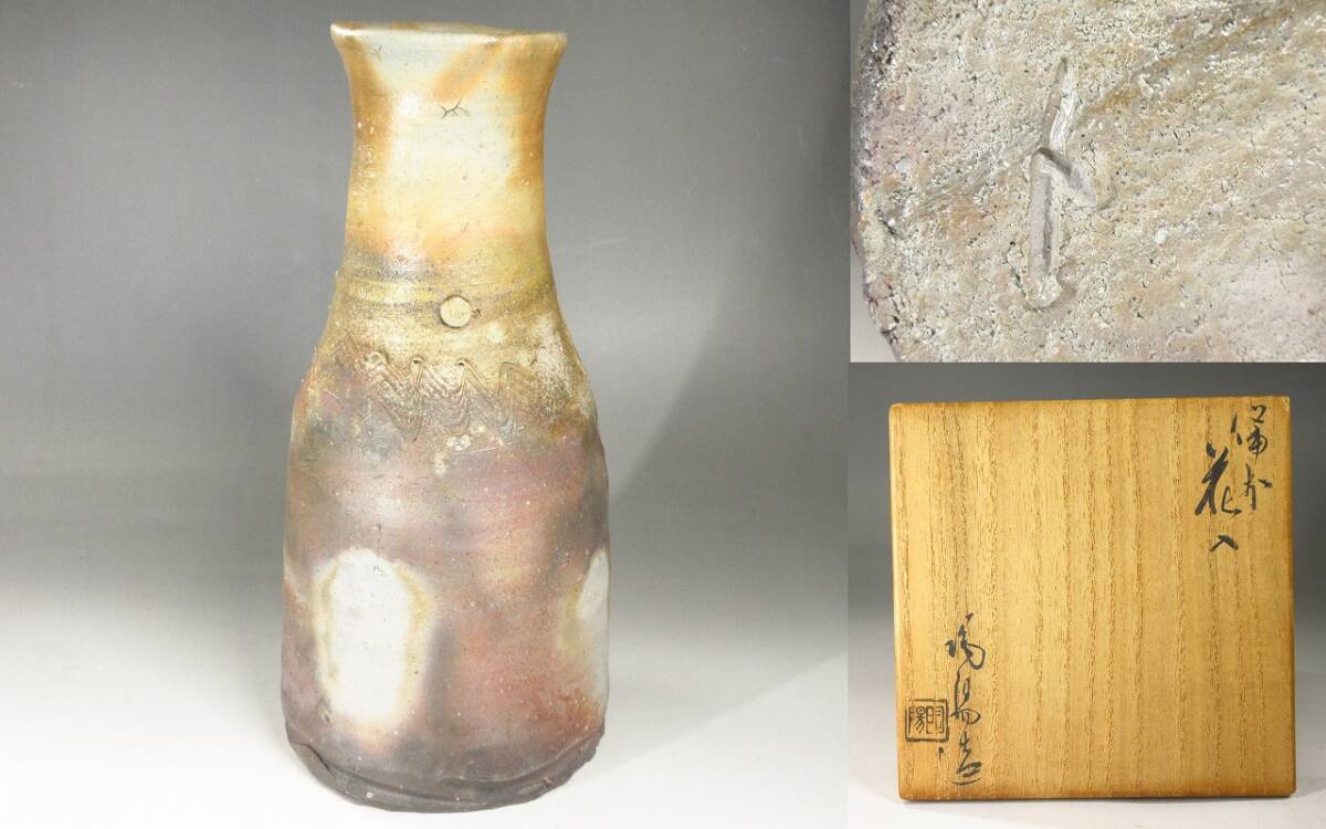 - 【漸】人間国宝『金重陶陽』造 備前花入 共箱 備前焼 花瓶 茶道具 本物保証【HY2670】