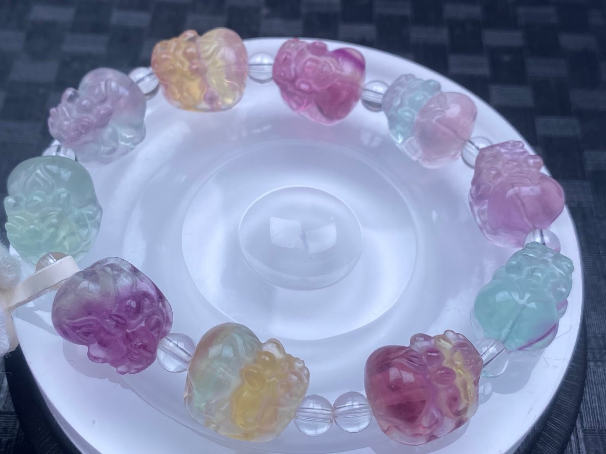 - 即決 0619k923 天然美品★【20Aファントムフローライト】★貔貅★雕刻ブレス 18x14mm(新品)