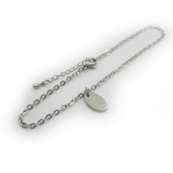 - ステンレスチェーンブレスレット チャーム付き 2.4mm幅 SB69 約21cm(18+3cmアジャスター)