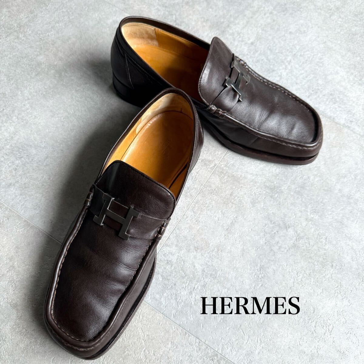 - 美品 エルメス HERMES ローファー モカシン コンスタンス Hロゴ レザー シューズ 革靴 メンズ 40 1/2(25.5cm相当) ブラウン シルバー金具