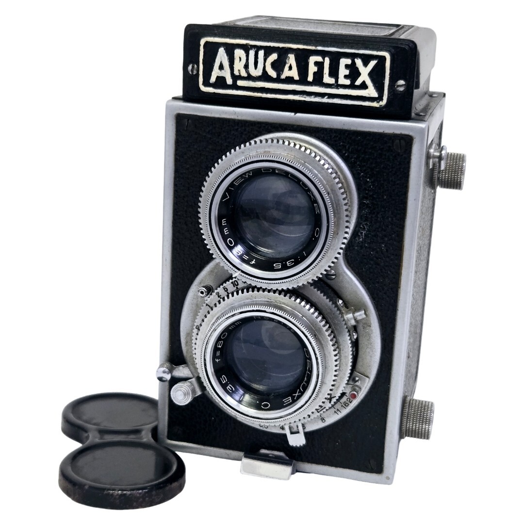 > 【返品保証】 【希少】 Arucaflex Deluxe C 80mm F3.5 二眼カメラ Z1910