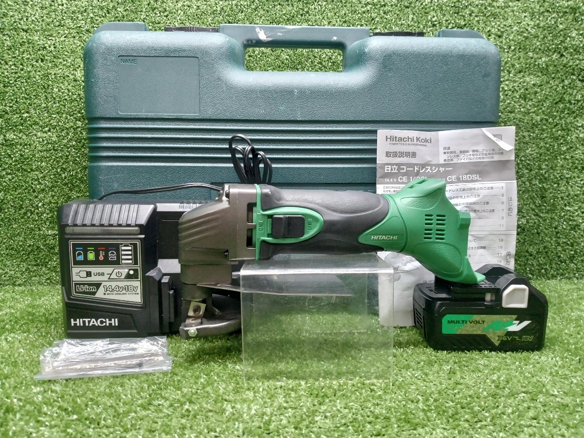 - 中古 HITACHI 日立工機 18V コードレスシャー 切断能力軟鋼板1.6mm 2.5Ahバッテリー 充電器 付 CE18DSL LYPK