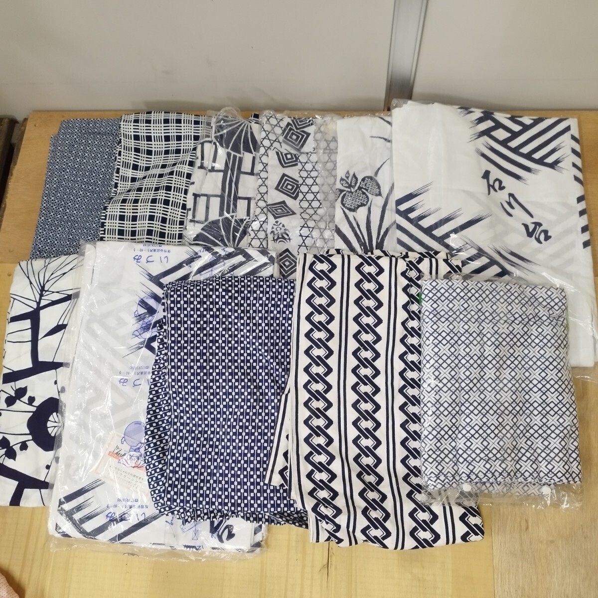 - 戸06c 浴衣 11枚 まとめ 売り 着物 和装 和柄 和服 レトロ柄 花柄 サイズ色々 白色 紺色 黒色 リメイク 材料 素材 生地 旅館 温泉 風