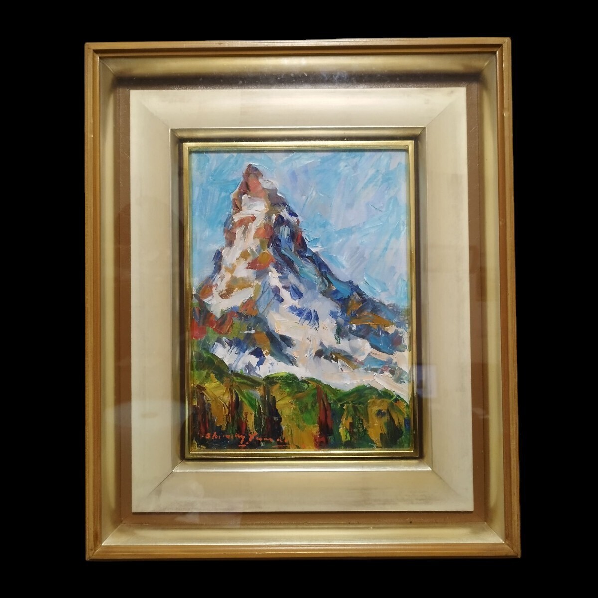 - 【真作】 山田新一 『マッターホルン 油彩 4号』 額装 風景画 油絵 直筆サイン 山 アルプス山脈 ヨーロッパ 自然
