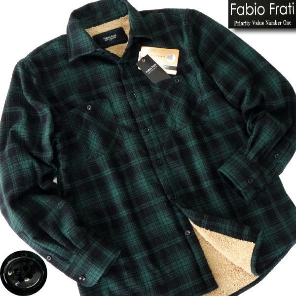 - 新品 ファビオフラーティ 裏ボア フランネル シャツ ジャケット LL 緑黒 【FF8W-B480_GE_LL】 FABIO FRATI 秋冬 ブルゾン ネルシャツ